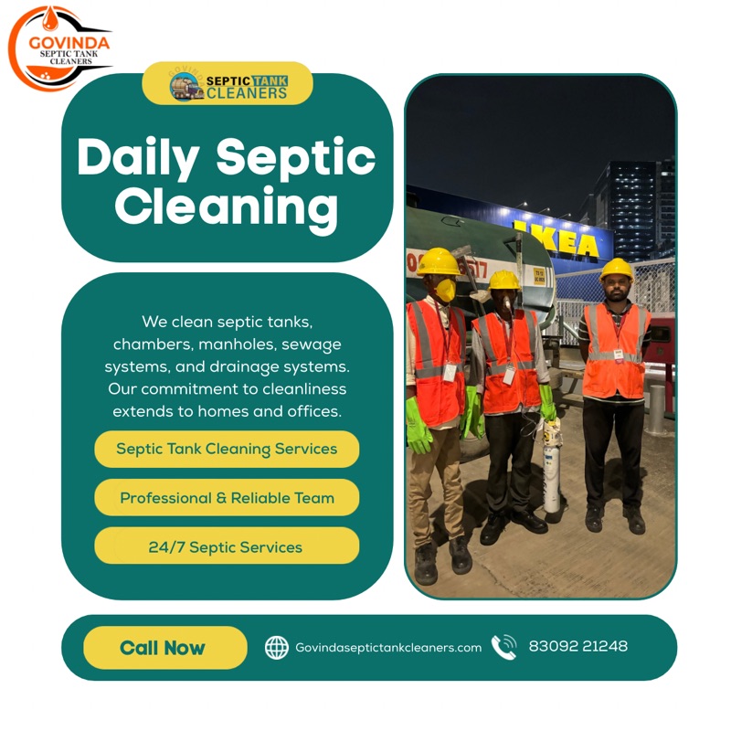 Looking for professional and reliable septic tank cleaning services in Hyderabad? Govinda Septic Tank Cleaners offers fast, efficient, and hygienic solutions for residential and commercial properties. Our trained septic tank cleaners specialize in cleaning septic tanks, chambers, manholes, sewage systems, and drainage lines using advanced equipment for safe and long-lasting results.