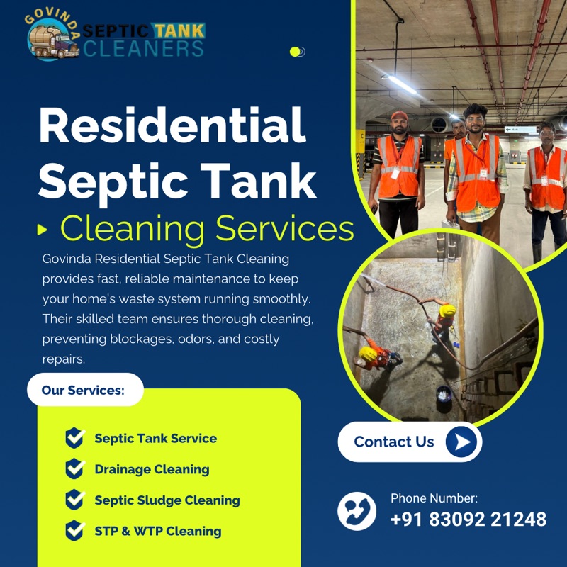 Keeping your home’s waste system healthy starts with reliable septic tank cleaning. At Govinda Septic Tank Cleaners, we specialize in professional and timely residential septic tank cleaning services designed to prevent blockages, foul odors, and septic system failures. Our expert team uses safe, efficient methods to ensure your system functions smoothly and lasts longer.