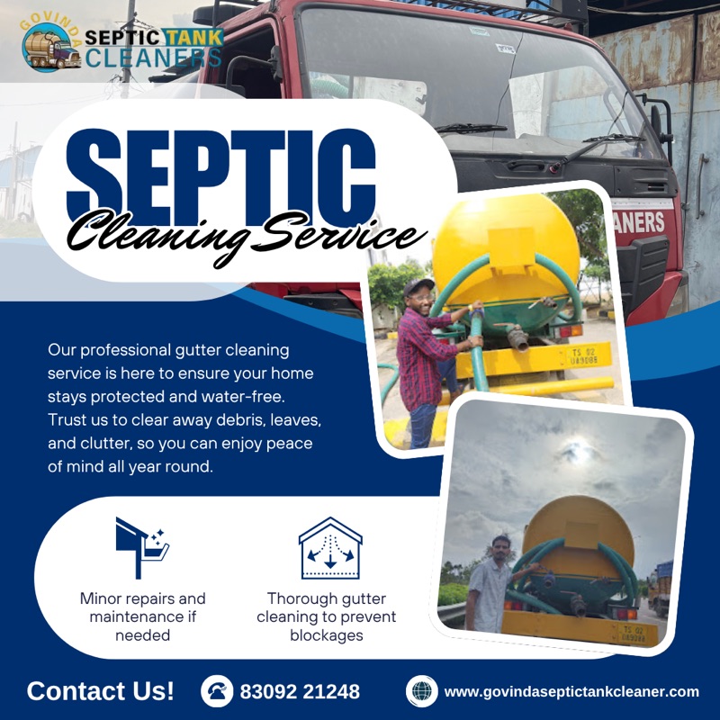 Looking for reliable septic tank cleaning in Hyderabad or gutter cleaning services near Kokapet? Govinda Septic Tank Cleaners offers fast, affordable, and professional cleaning solutions to keep your home safe, hygienic, and clog-free. Our team provides septic tank cleaning, drainage cleaning, and gutter blockage removal in Hyderabad, ensuring smooth flow and preventing water damage.