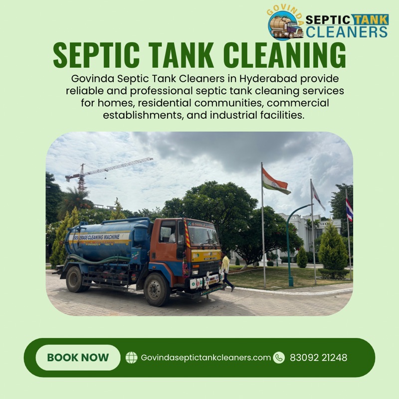 If you are searching for septic tank cleaning near me, Govinda Septic Tank Cleaners in Hyderabad is your trusted choice for fast, professional, and affordable service. We specialize in providing septic tank cleaning services for residential homes, apartments, gated communities, hostels, hotels, commercial buildings, and industrial facilities across the city. With years of experience and advanced suction and jetting machines, our team ensures safe, hygienic, and thorough cleaning of your septic system.