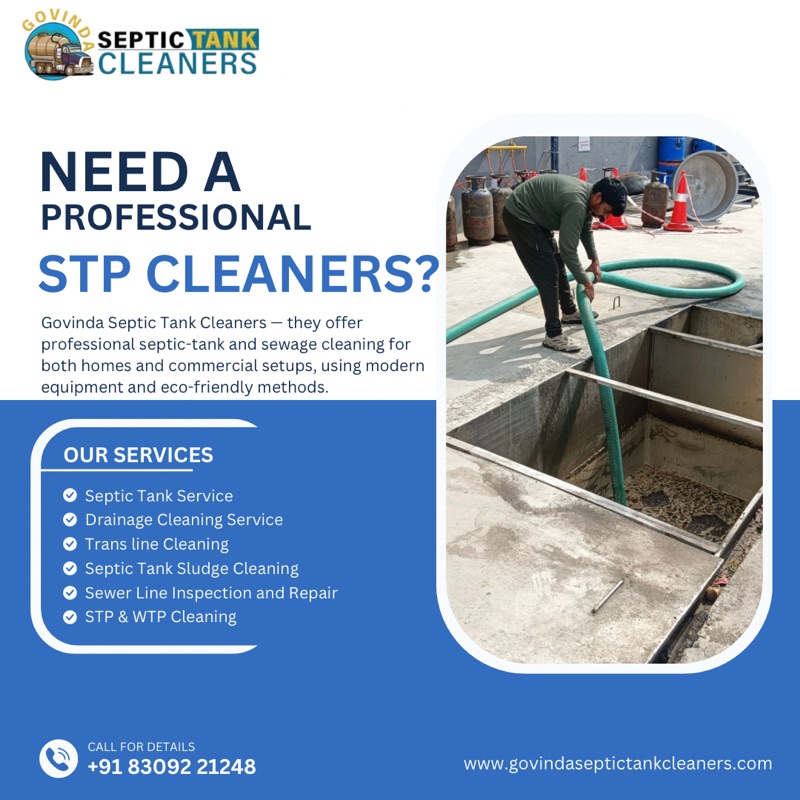 Regular septic tank cleaning not only prevents blockages and foul odors but also helps improve the lifespan of your drainage system. At Govinda Septic Tank Cleaners, we focus on delivering hygienic, eco-friendly, and cost-effective solutions tailored to your needs. From septic tank sludge removal and drainage line clearing to STP & WTP cleaning, our team is equipped to manage any challenge with professionalism and care.